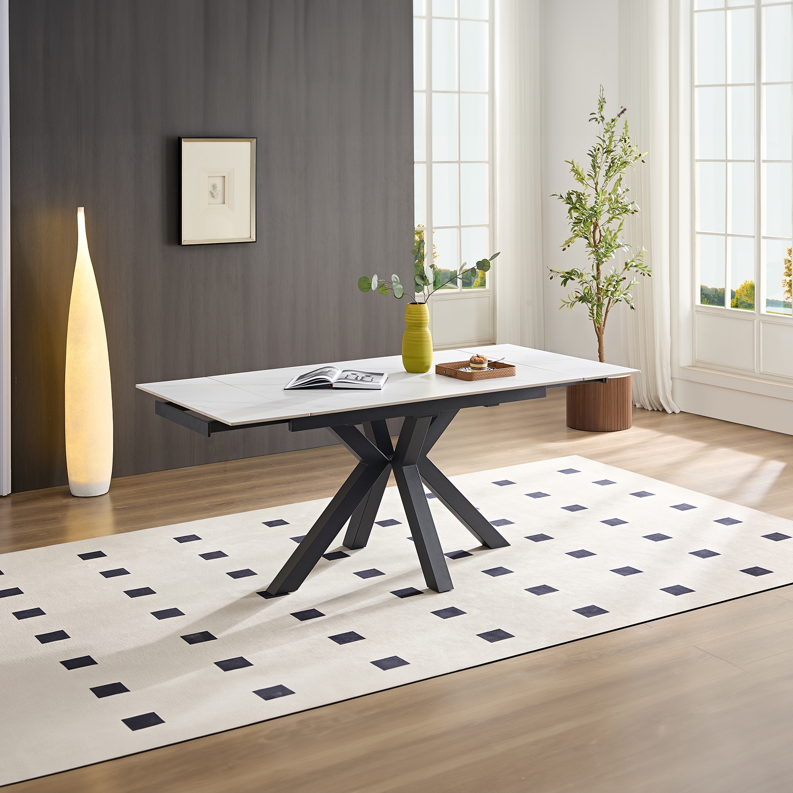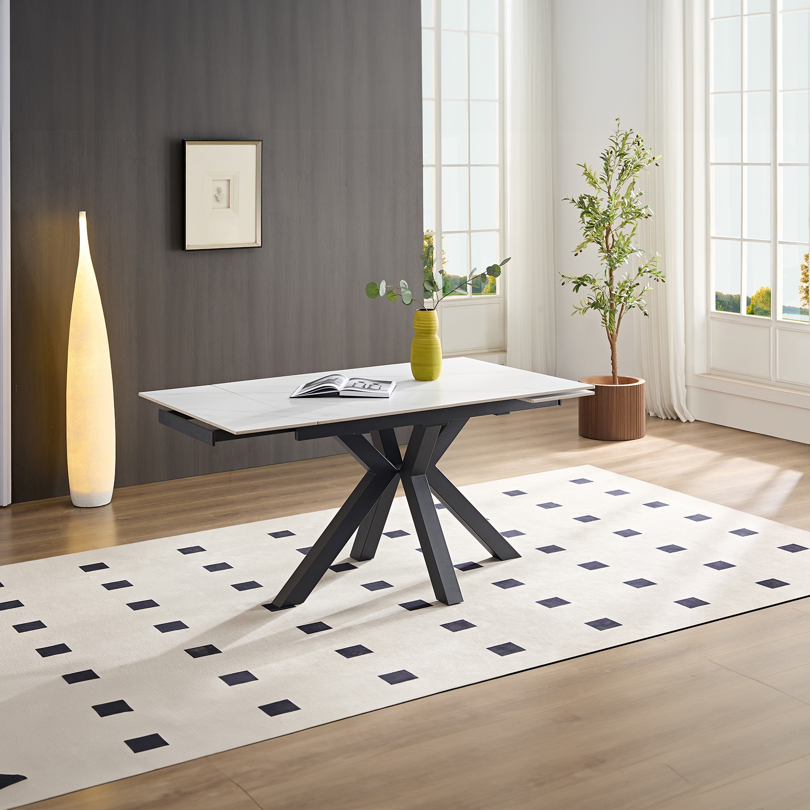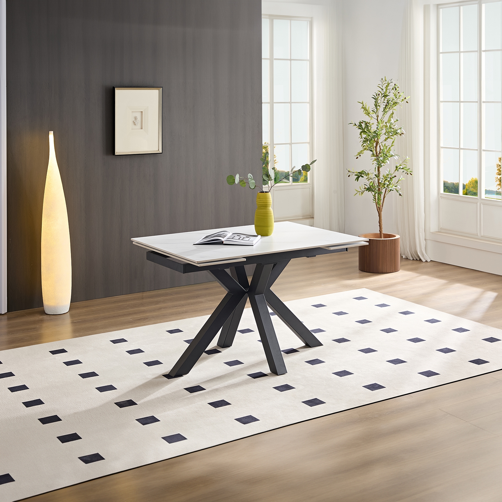 With its extendable design, the Rialto White Sintered Stone Small Dining Table adapts to your changing needs, whether it’s for a relaxed family meal or a small gathering. Its space-efficient design and durable materials make it the perfect choice for modern living, combining functionality and elegance in one sleek piece.