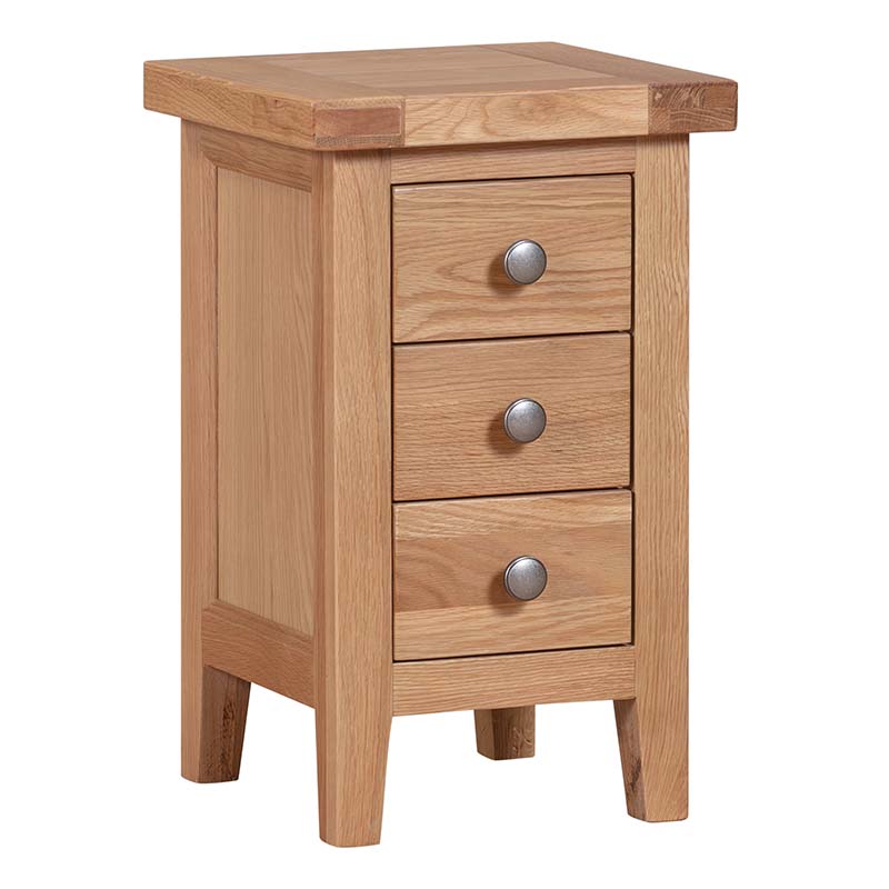 A bedside table is a bedroom essential for your lamp, latest blockbuster novel and or a morning or bedtime drink, our Harwick Light Oak 3 Small Drawer Bedside is the perfect small bedside table solution. It is full of natural character and provides lots of storage in the three drawers.