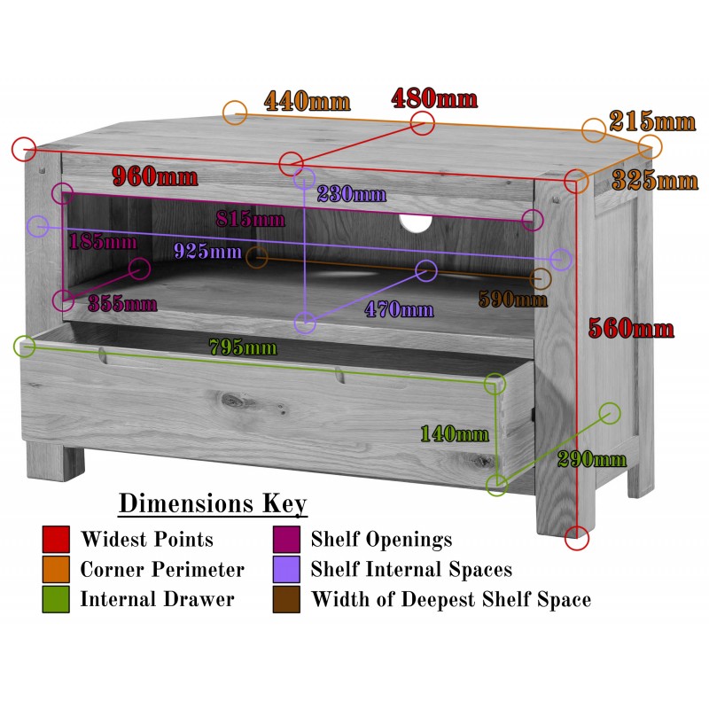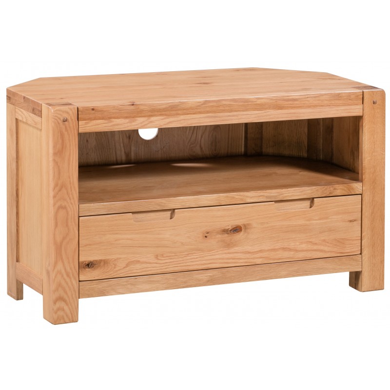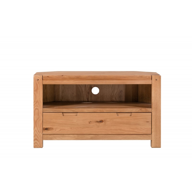 This Rustic Oak Corner TV Unit is an ideal place to display and watch your TV from and to store any other TV related devices. It is perfect for smaller spaces as it fits neatly into a corner taking up less space than a standard TV unit. The deep drawer is ideal for storing DVDs and remote controls.