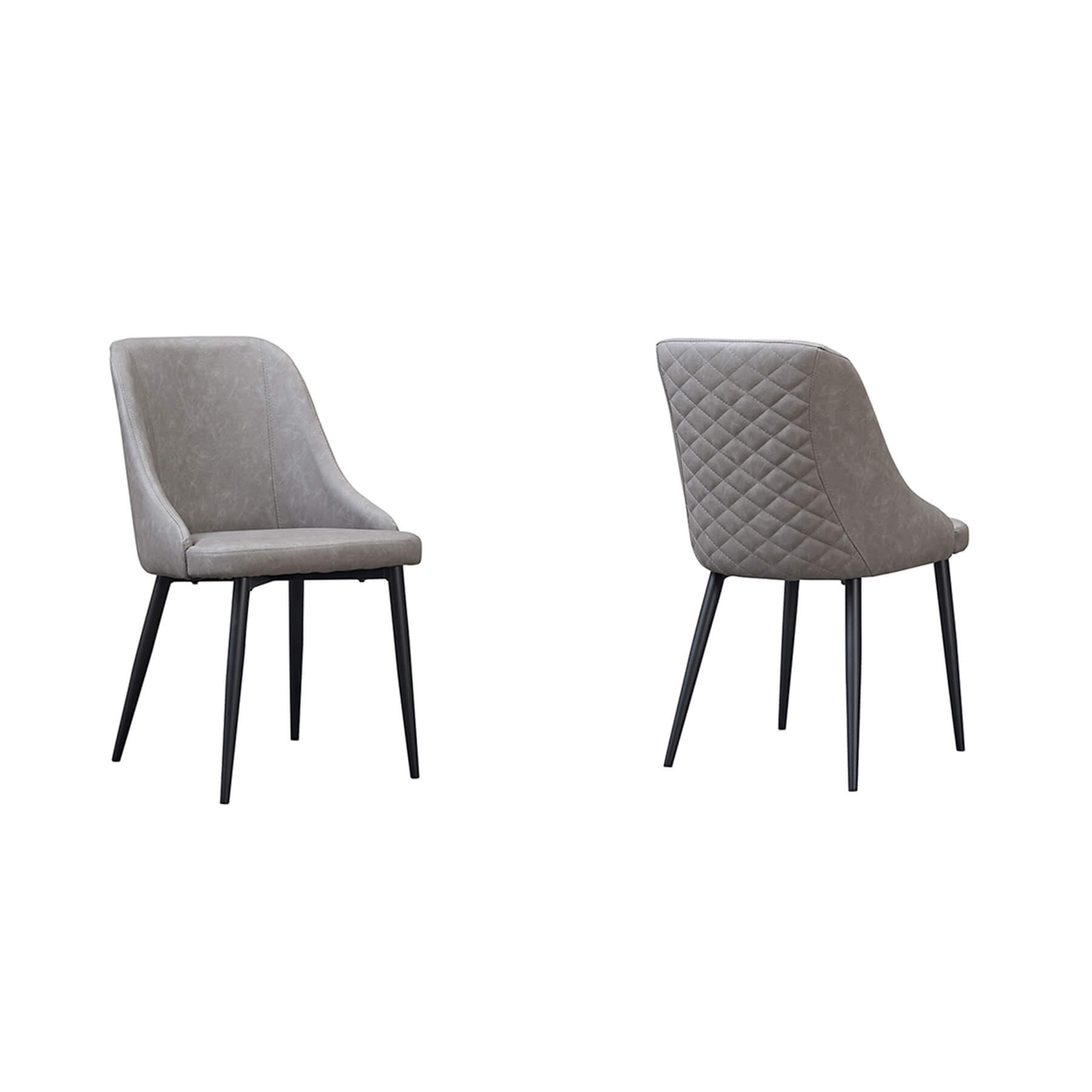 The chair stands on sleek black metal legs, which perfectly complement the Rialto dining tables, ensuring a coordinated look for your dining area. For added visual interest, the back of the chair showcases a refined diamond stitch pattern, lending a touch of texture and sophistication to the overall design. The diamond stitching adds an element of craftsmanship and enhances the chair’s appeal as a statement piece.
