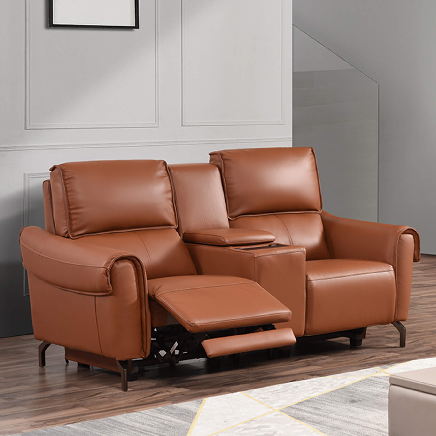 Euston 2 Seater with Wireless Charger Console – Tan Genuine Italian Leather Sofa (Electric Reclining)